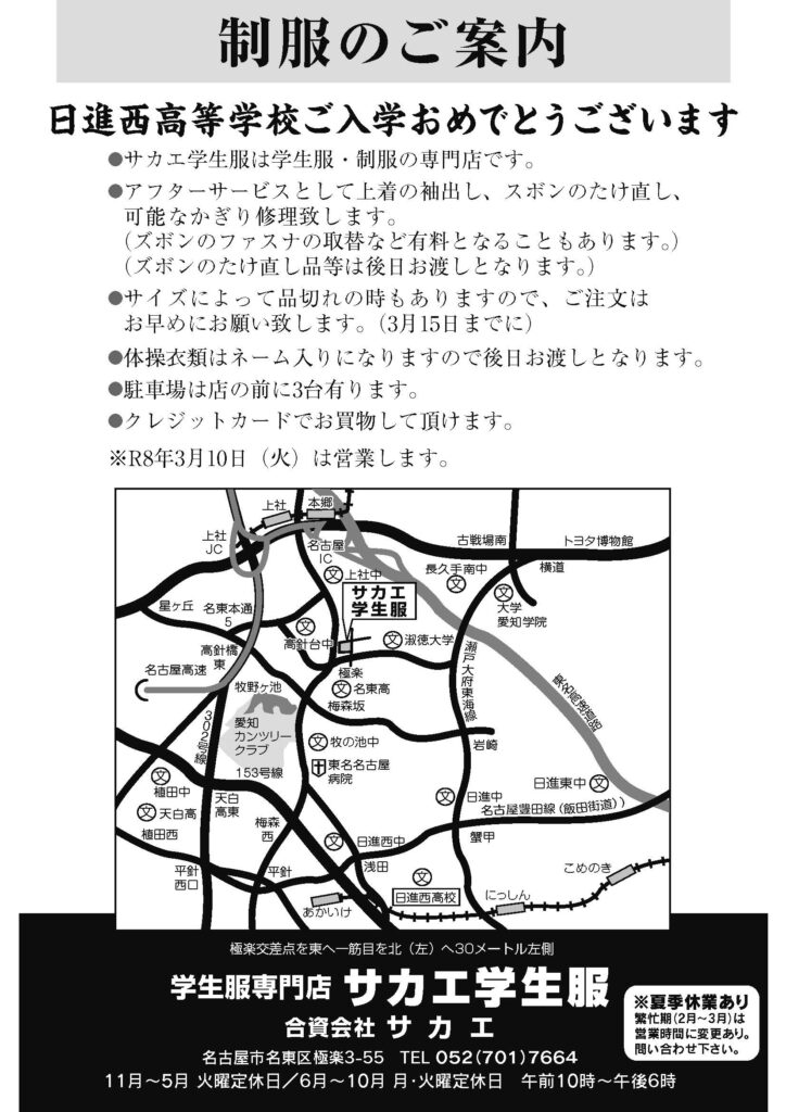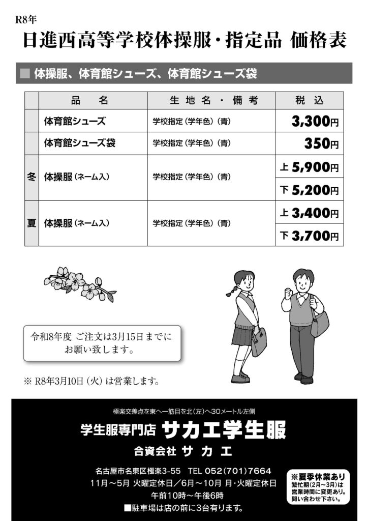 日進西高校 制服料金